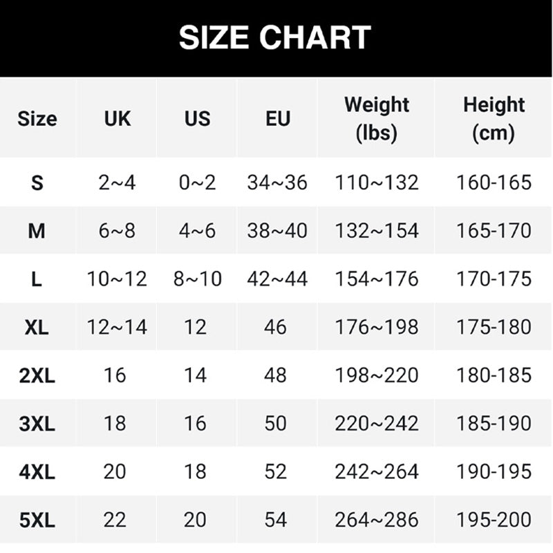 Størrelse: S, M, L, XL, 2XL, 3XL, 4XL, 5XL