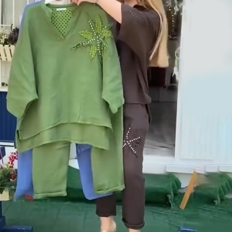 Avslappet og pustende 2-delt sett for kvinner - topp og bukse