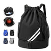 - Multi-Pocket Design: Sidenettingslommer med elastiske stropper på begge sider av sportsbagryggsekken kan romme vannflasker, paraplyer; frontlomme kan lagre vev og toalettsaker; bunnen er et uavhengig skorom; Det er også en ekstra innvendig glidelåslomme inne i tauvesken, som er stor nok til å holde små verdisaker som sportsklokke, lommebok osv. for å unngå lommetyvene