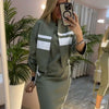 VERTIKALE SIDESTREKER – Kjolen fremheves av vertikale striper langs sidene, som subtilt forlenger silhuetten og skaper et elegant utseende. Denne detaljen gir ikke bare visuell interesse, men fremhever også kroppens naturlige linjer. Stripe-designet harmonerer med den fargede jakken, slik at de to plaggene danner en helhetlig og stilig helhet.