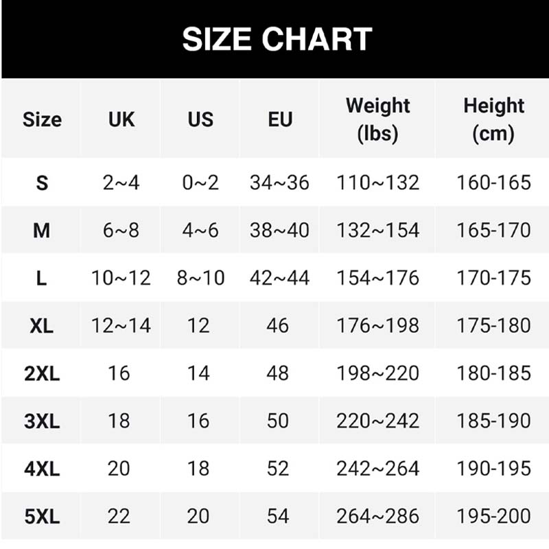 Størrelse: S, M, L, XL, 2XL, 3XL, 4XL, 5XL