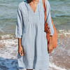 Sommerkjole i bomull og lin med V-hals for kvinner