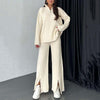Pakken inkluderer: 1 * Koselig todelt sett med ribbestrikket strikk for kvinner med bukser med spalteben