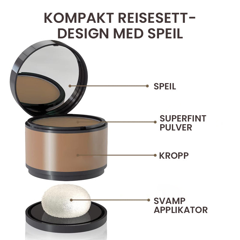 Dette pulveriserte mineralpigmentet blander seg perfekt med det naturlige håret, noe som gjør det til en fantastisk skjønnhetshemmelighet! Ta den med hvor som helst for de nødstilfellene under fester eller kvelder.