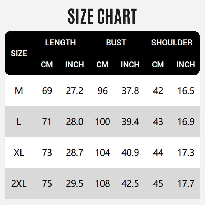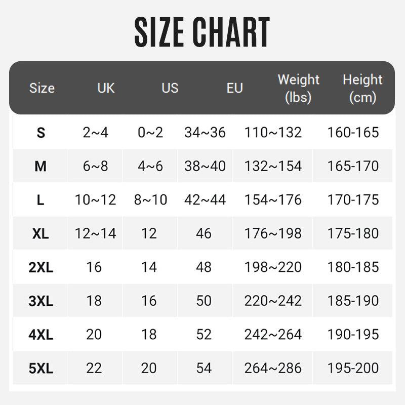 Les størrelsestabellen nøye før du kjøper for å sikre best mulig passform.