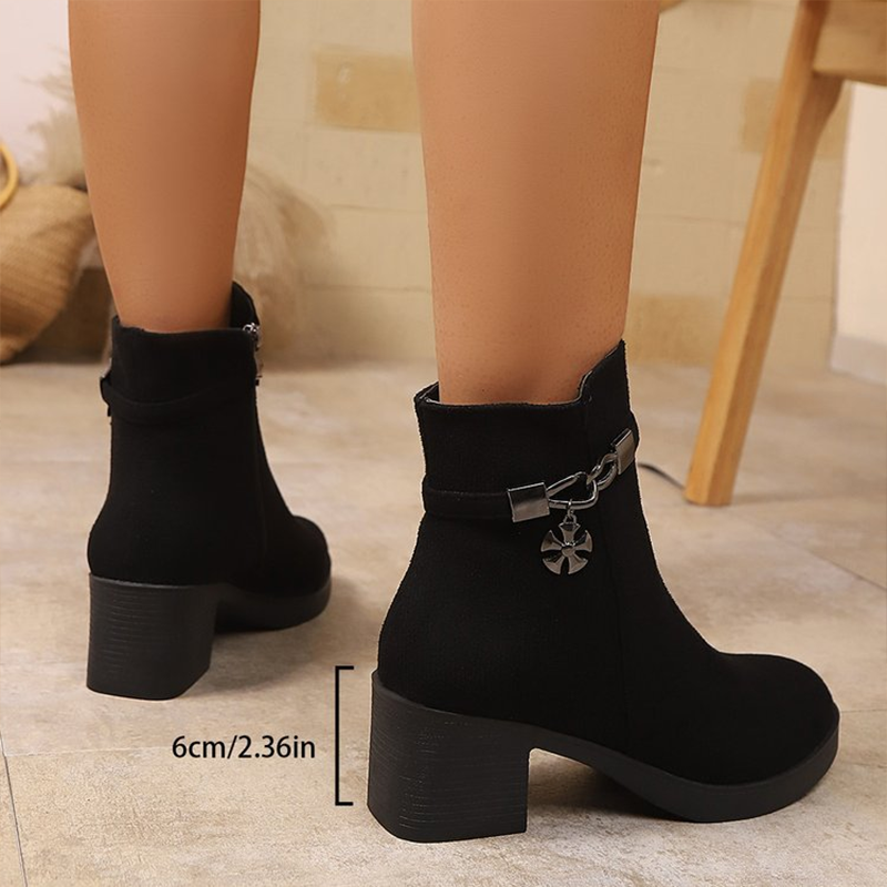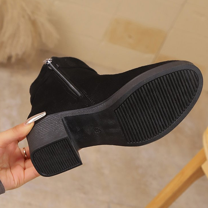 Ortopediske ankelstøvler for kvinner med glidelås og tykk hæl i ruskindseffekt