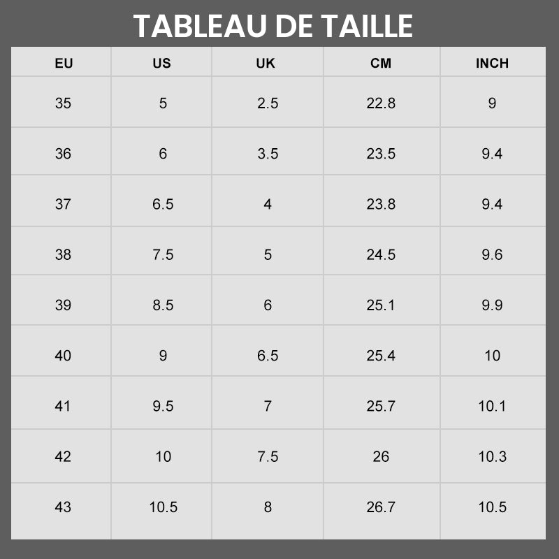 Il vous permet de marcher librement par tous les temps, car nous utilisons une semelle en caoutchouc antidérapante et résistante à l'usure qui offre un amorti et un soutien supérieurs, afin que vous puissiez faire chaque pas avec détente.