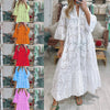 TIME ELEGANCE - Denne flytende maxikjolen utstråler et raffinert og sofistikert uttrykk med sin klassiske V-utringning og fine hullmønsterdetaljer, noe som gjør den til et allsidig valg for en rekke ulike anledninger.