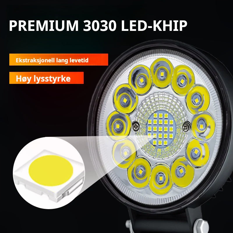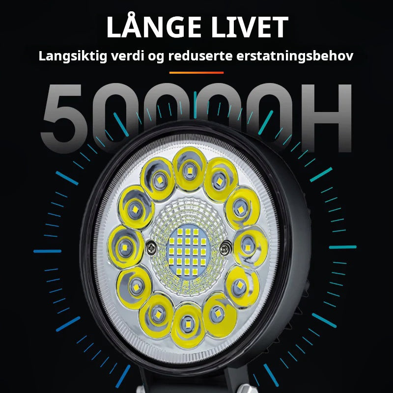 ROBUST OG PÅLITELIG KONSTRUKSJON – Denne arbeidslampen er bygget med et slitesterkt aluminiumshus og er designet for å tåle tøffe forhold. Den robuste konstruksjonen gir overlegen vibrasjonsmotstand og generell stabilitet, noe som garanterer pålitelig ytelse enten det er på et kjøretøy i bevegelse eller på en statisk arbeidsplass.