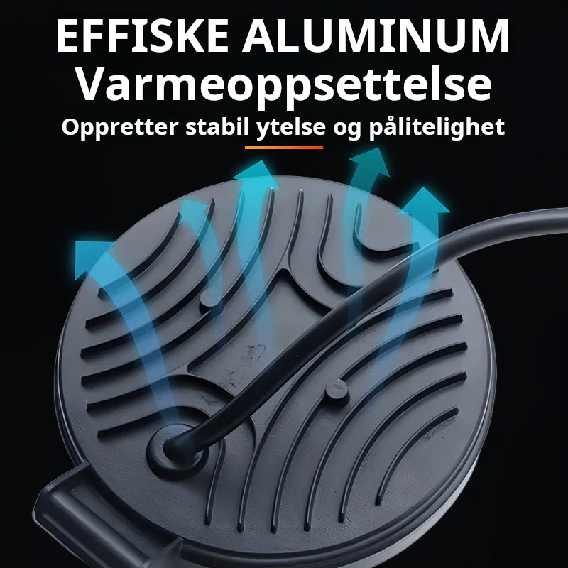 UTMERKET VARMEAVLEDNING – Konstruert med et førsteklasses trykkstøpt aluminiumshus som fungerer som en effektiv kjøleribbe. Denne designen forlenger levetiden til de interne komponentene drastisk ved å effektivt håndtere driftstemperaturer, noe som sikrer stabil ytelse og langsiktig pålitelighet.