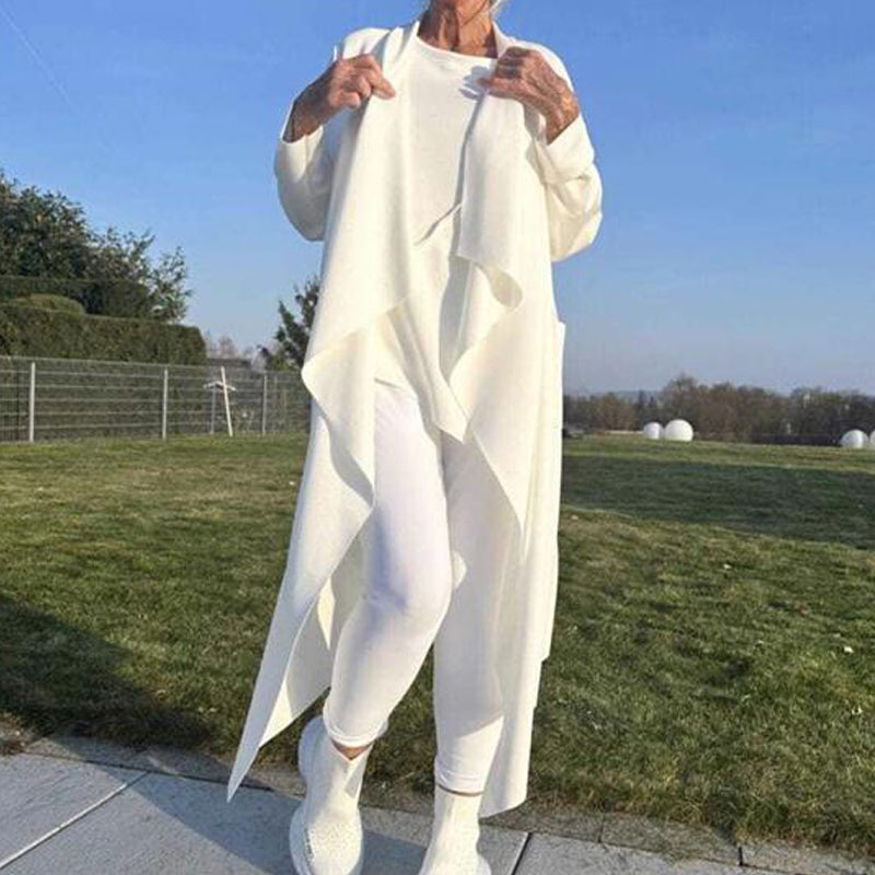 đ Langermet cardigan med Ă„pen front for kvinner â uregelmessig draperingsdesign, uformell og lĂžs lagdeling, et must-haveđ