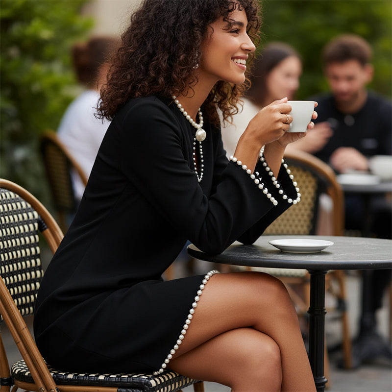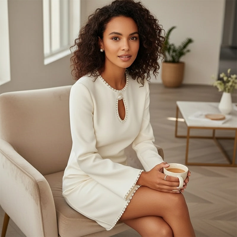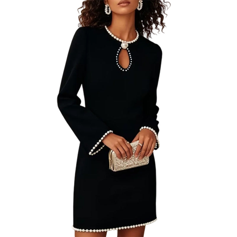 ELEGANT FAUX PERLEPYNTSNING - Denne kjolen er pyntet med delikate perler langs halsen, mansjettene og kanten, og gir et snev av tidløs raffinement og luksus, slik at du garantert gjør et minneverdig inntrykk på enhver formell sammenkomst.