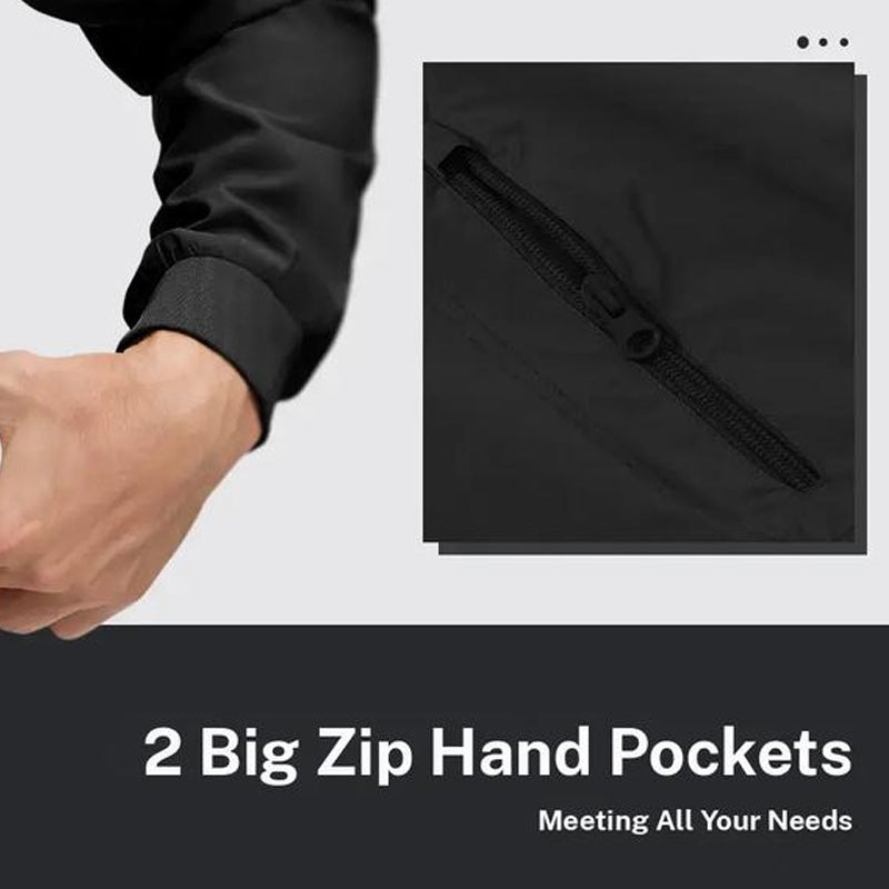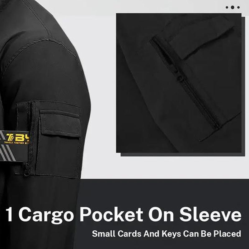 FUNKSJONELL LOMME: En dedikert lomme med glidelås på venstre erme gir sikker oppbevaring av små nødvendigheter som nøkler eller ørepropper. Denne detaljen kombinerer praktisk funksjonalitet med dristig design, bryter monotonien i ensfargede plagg og tilfører en praktisk stil som løfter hverdagsantrekket.
