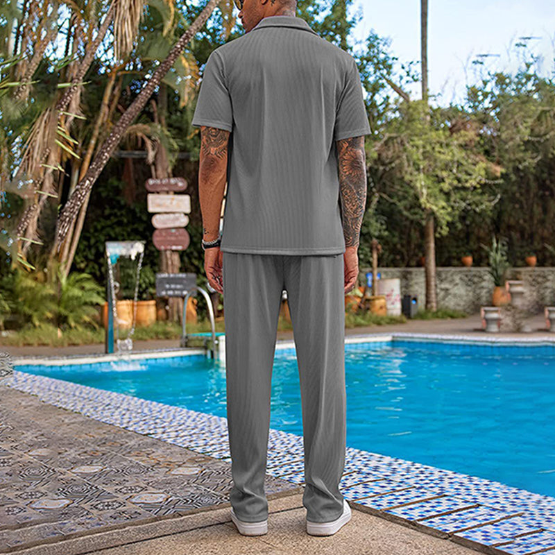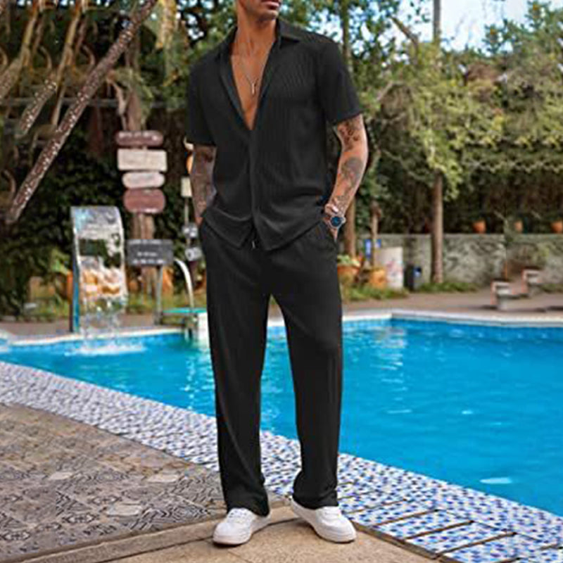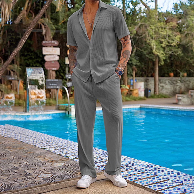 STILIG TO-PIECE-SETT - Denne koordinerte skjorte- og buksekombinasjonen gir uanstrengt stil i ett. Den matchende designen gir et polert, sammensatt utseende som er ideelt for ferier, brunsj eller avslappede dager hjemme.