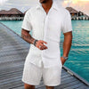 Løst 2-delt sett med kortermet skjorte og shorts for menn