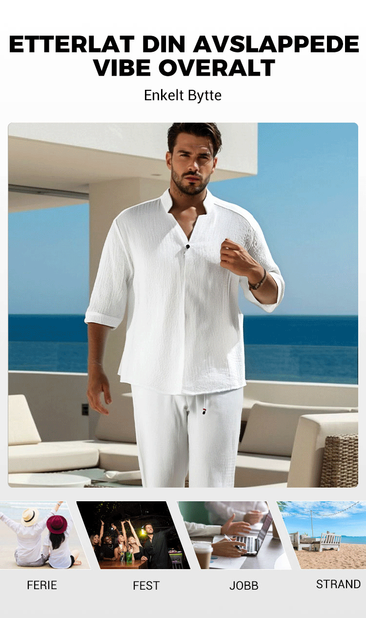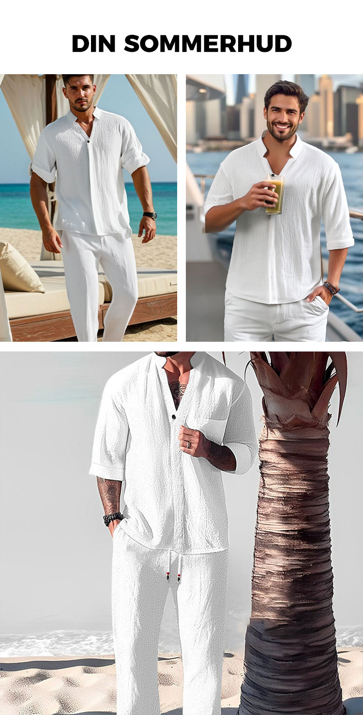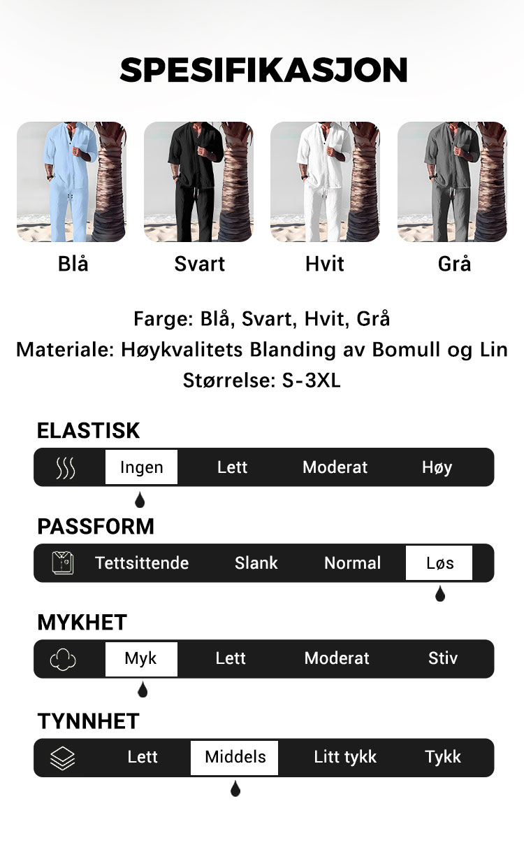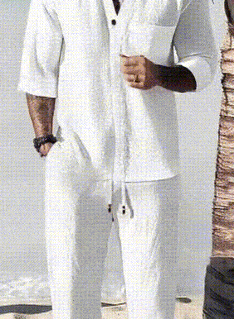 🌿💧Fasjonabelt todelt herresett i bomullslin: topp og bukse