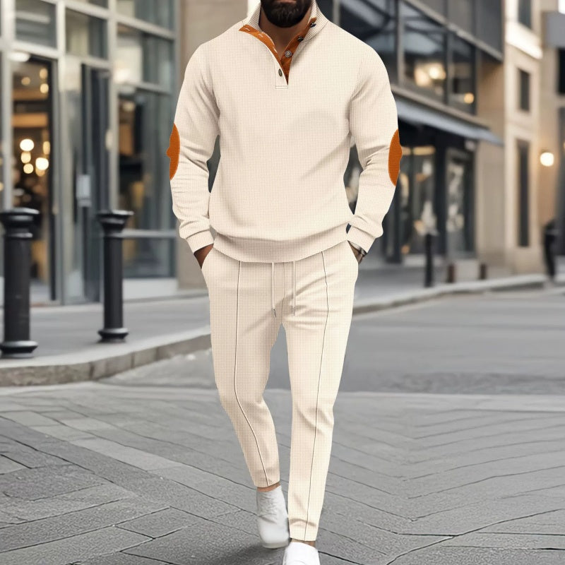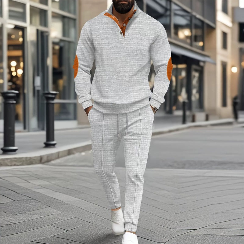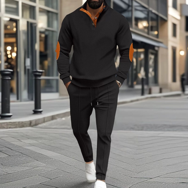 Strikket genser og bukse med halv glidelås for menn
