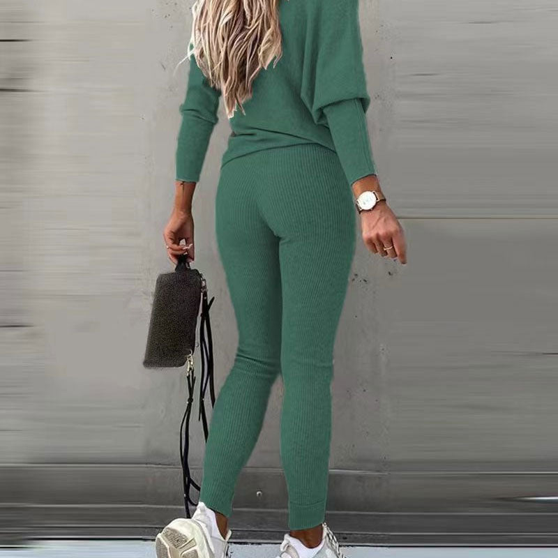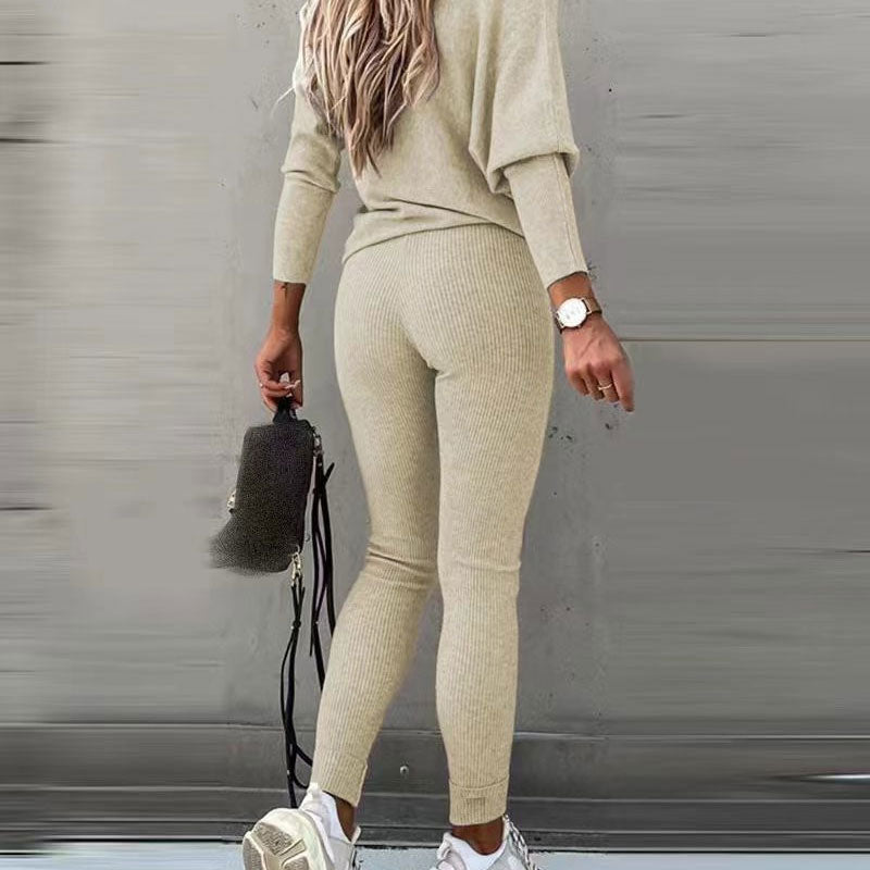Off-Shoulder langermet topp med bukser med snøring