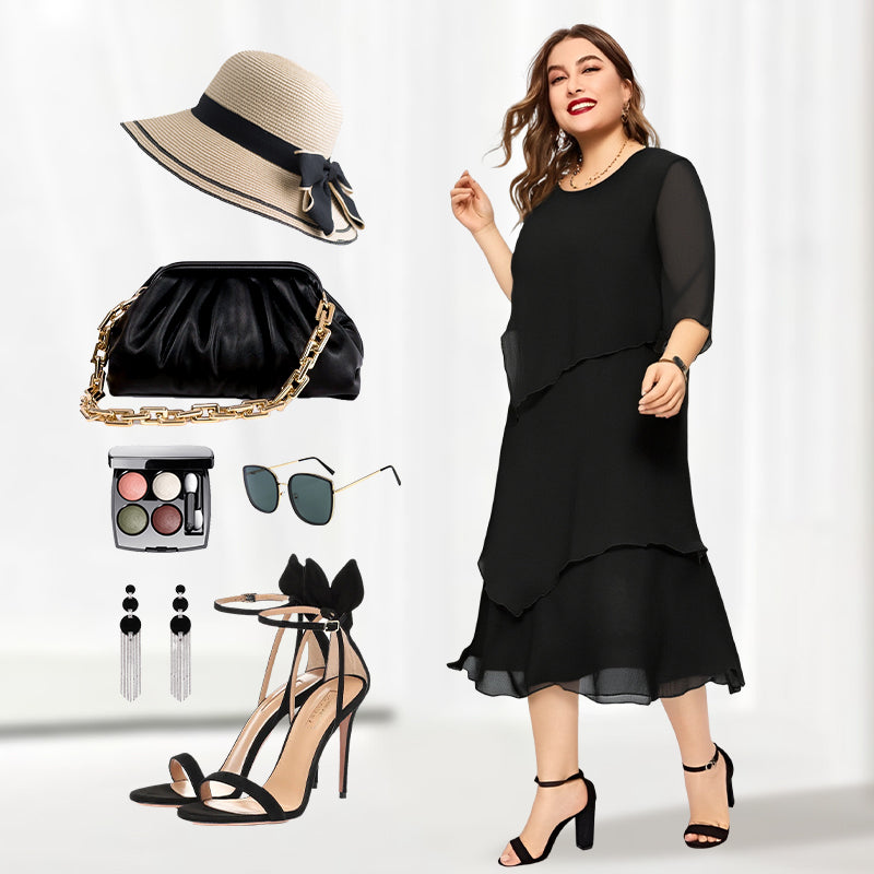 Pakken inkluderer: 1 * Plus Size lagdelt midikjole