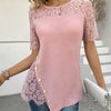 1 * Dametopp med blomstermønster og korte ermer i blonder