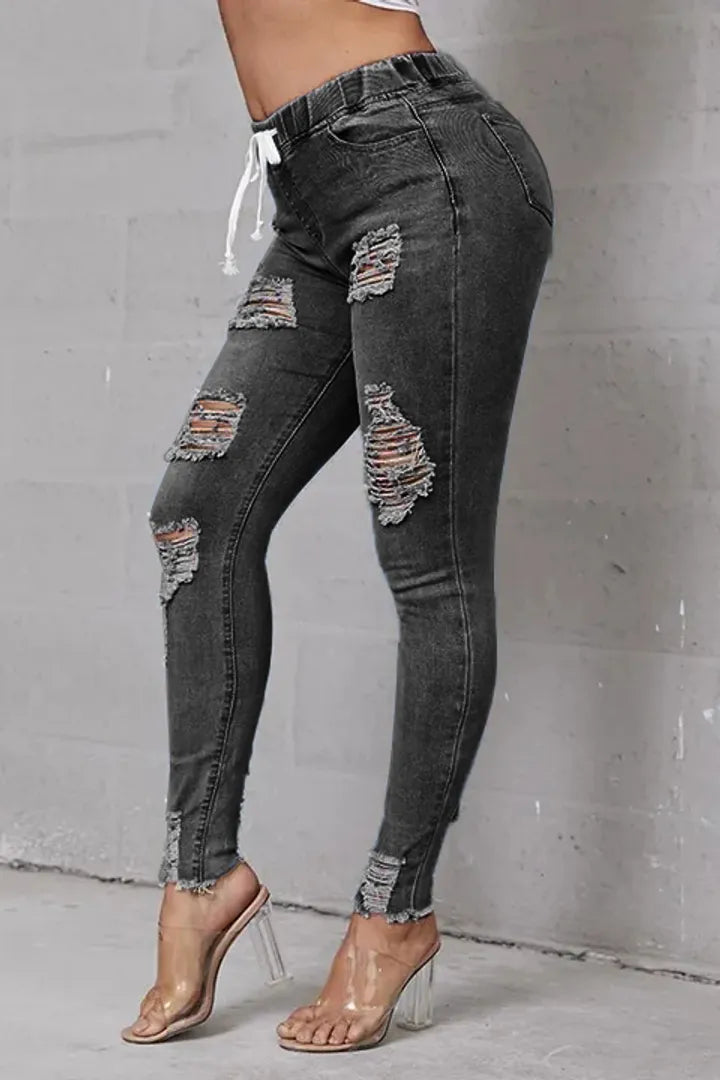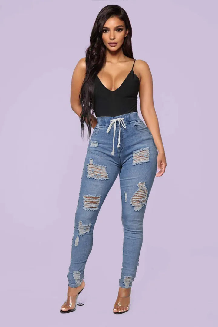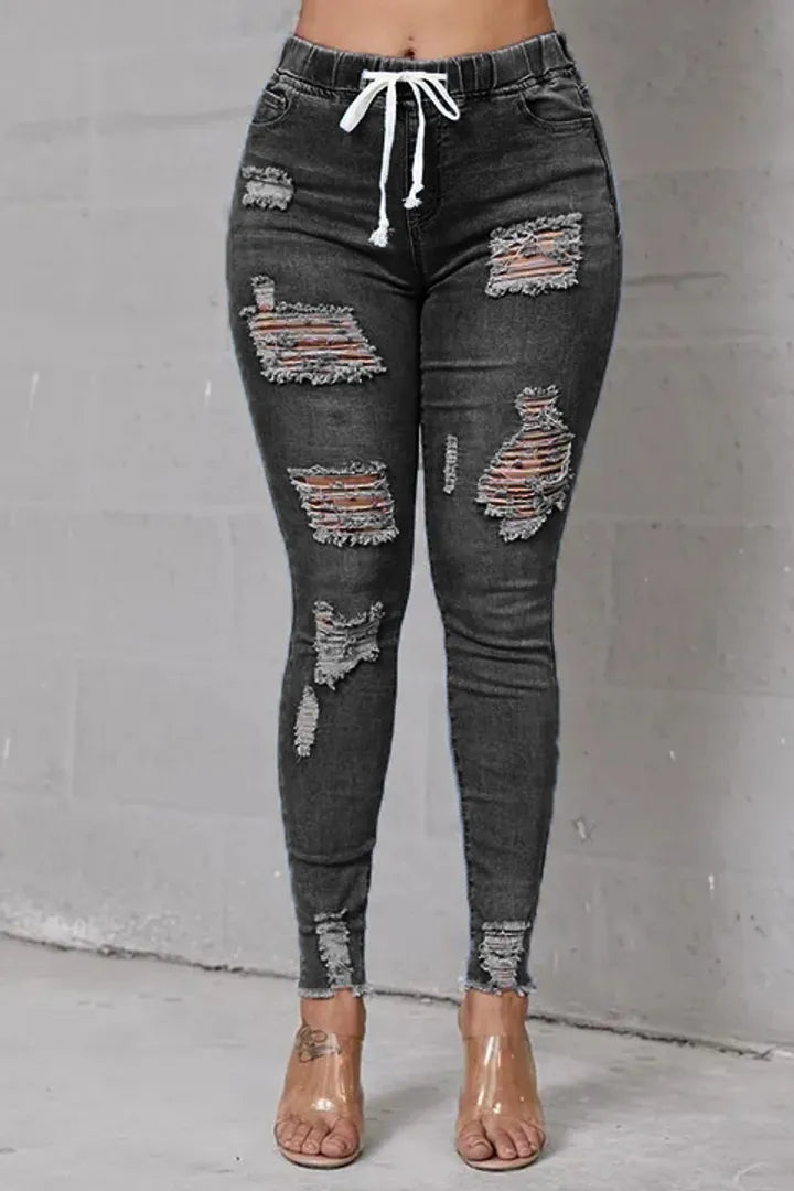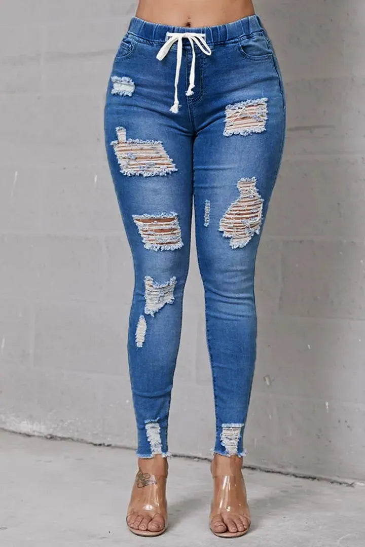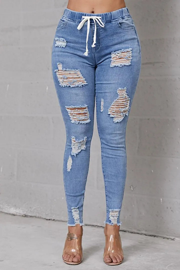 Pakke inkludert: 1x Skinny Stretch Ripped Jeans for kvinner