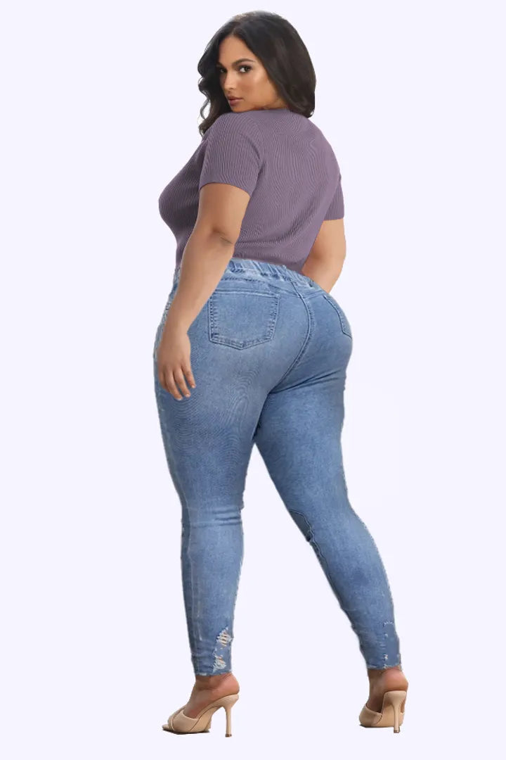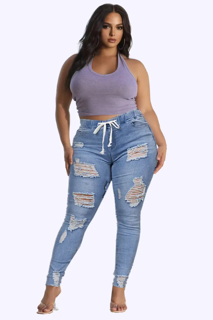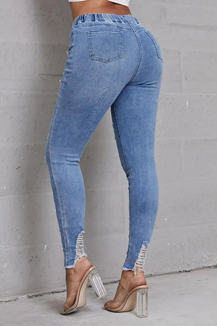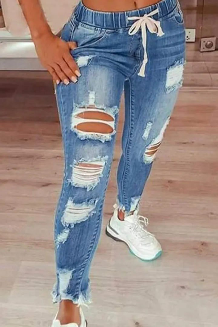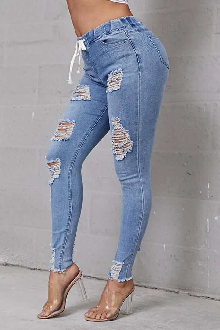 Pakke inkludert: 1x Skinny Stretch Ripped Jeans for kvinner