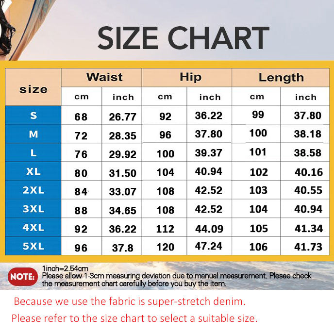 Fordi vi bruker stoffet er super-stretch denim. Se størrelsestabellen for å velge en passende størrelse.