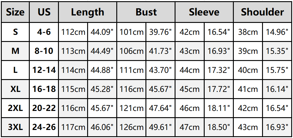Sjekk størrelsestabellen før du bestiller for å sikre best mulig passform;