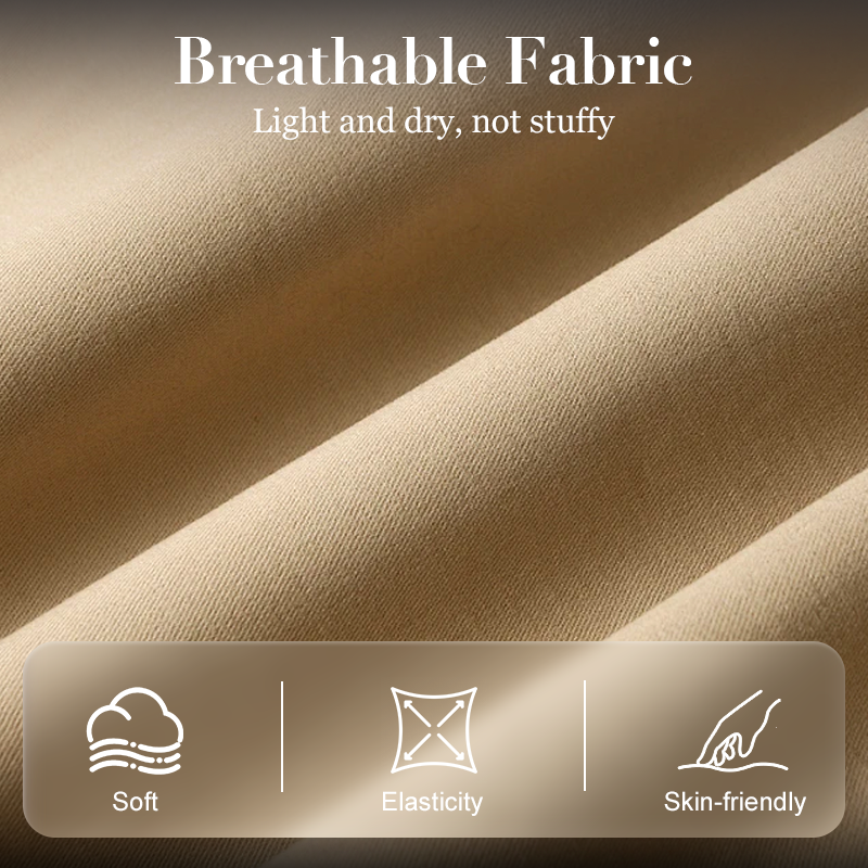 PUSTENDE STOFF - Laget av 80% Polyamid og 20% Elastan, er dette stoffet lett, strekkbart og pustende. Det gir en myk, glatt følelse mot huden, fuktfjerning for å holde deg tørr, og tillater en naturlig tett passform. Designet for helgedagsbruk, opprettholder det en frisk, luftig følelse uten å føles stramt eller innskrenkende.