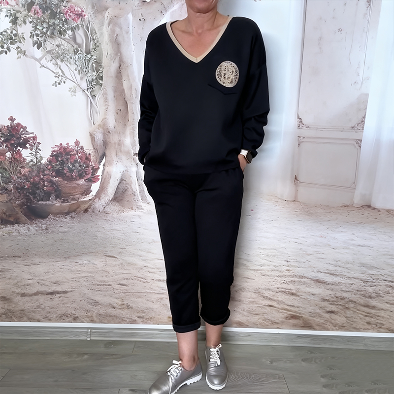 ELEGANT TOPP MED V-HALS - Et klassisk V-halsdesign som fremhever halsen din, komplett med en stilig dekorativ lomme som gir et unikt preg.