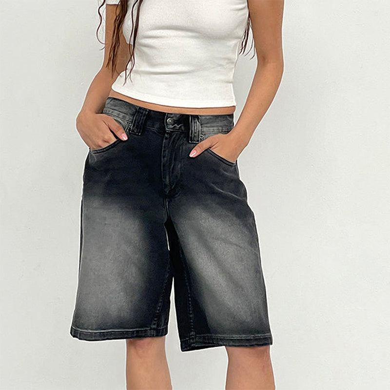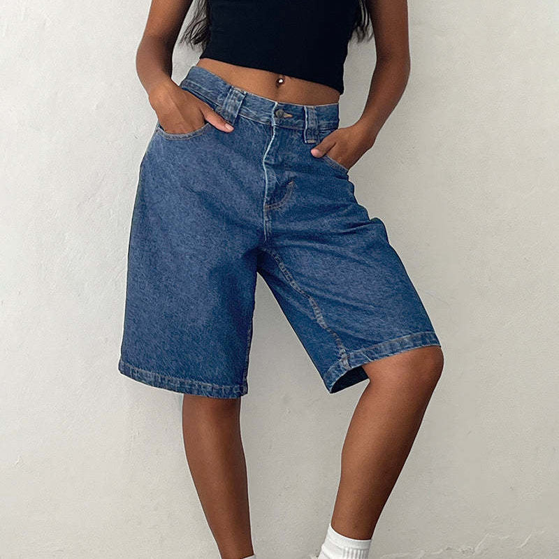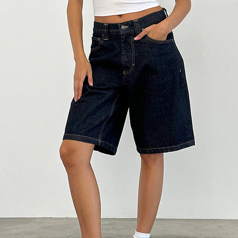 Pakken inkluderer: 1 * Baggy knelange denimjorts med lommer for damer