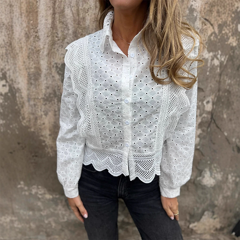 ENKEL Å BÆRE OG LEGGE I LAG - En elegant og allsidig topp som kan brukes alene eller i lag med jakker eller cardigans, perfekt til kontoret, brunsj eller helgeutflukter.