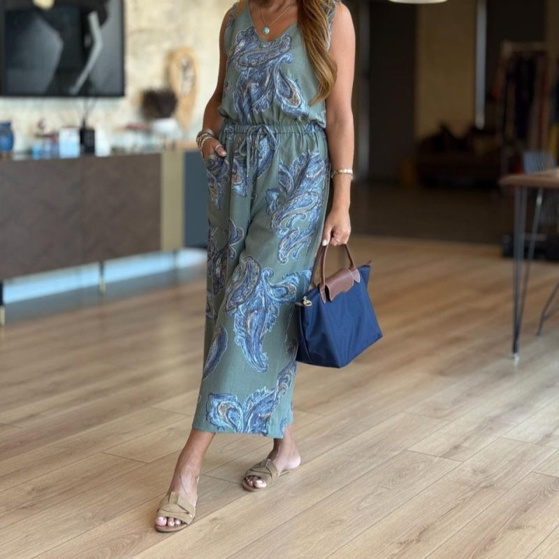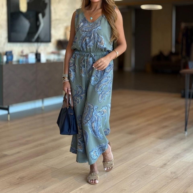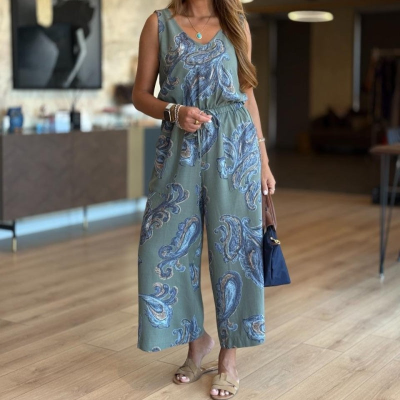 Uformell, ermeløs jumpsuit med trykk for kvinner