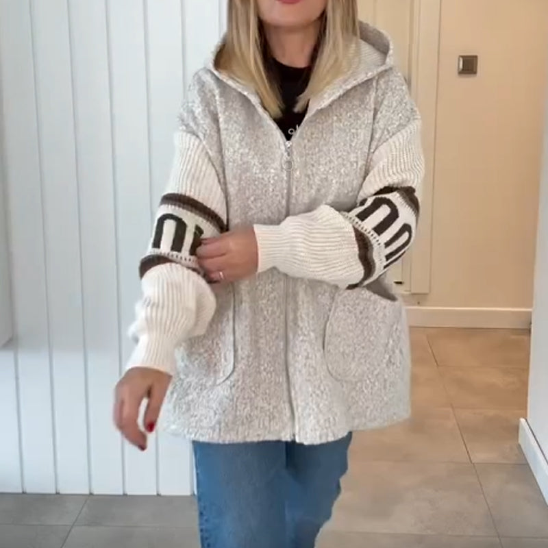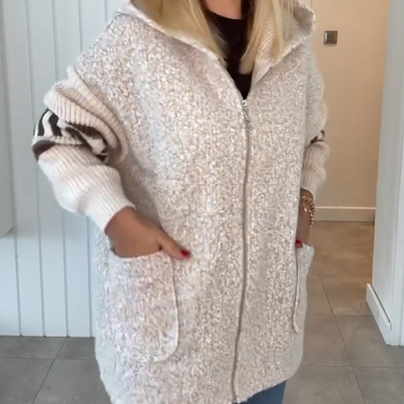 Women's Casual Spliced Knit Zip Hooded Coat