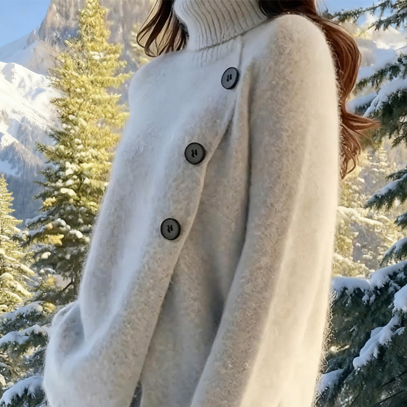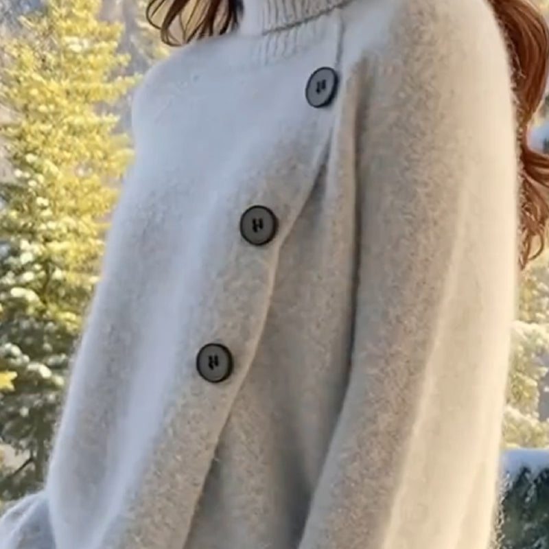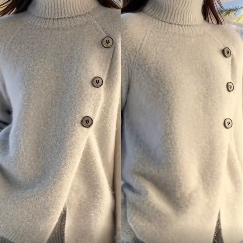 Koselig turtleneck-genser for kvinner med knapper på siden