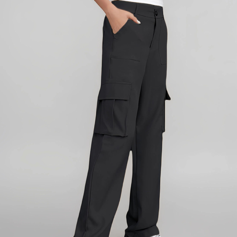 MODERN STIL: Oppgrader hverdagslooken din med disse moderne cargobuksene som på en mesterlig måte balanserer street-smart estetikk med komfort. Den elegante ensfargede designen tar deg enkelt fra kaffepauser til urbane oppdagelsesreiser, samtidig som du beholder et polert utseende.