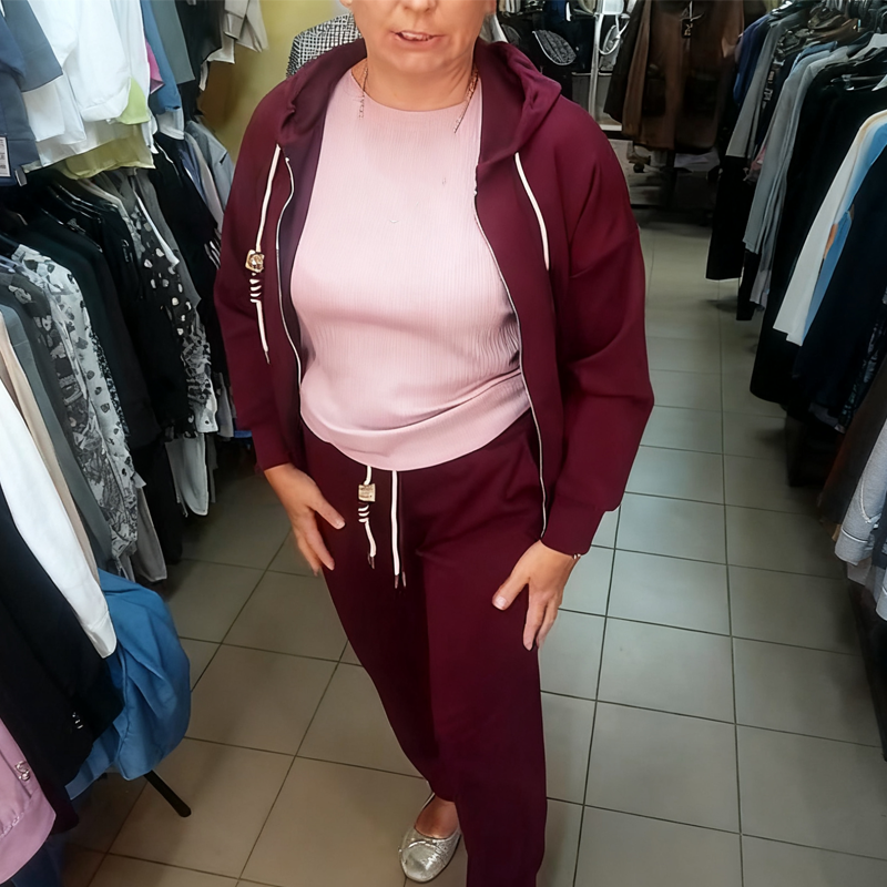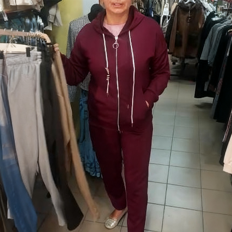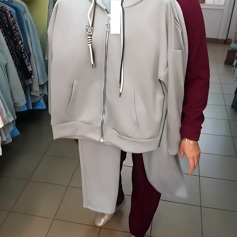 Damemote Jakke med hette og glidelås og joggebukse