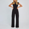 Sommer ermeløs jumpsuit med lange bukser og belte for kvinner.