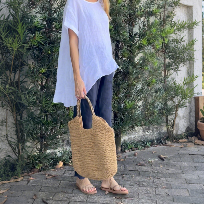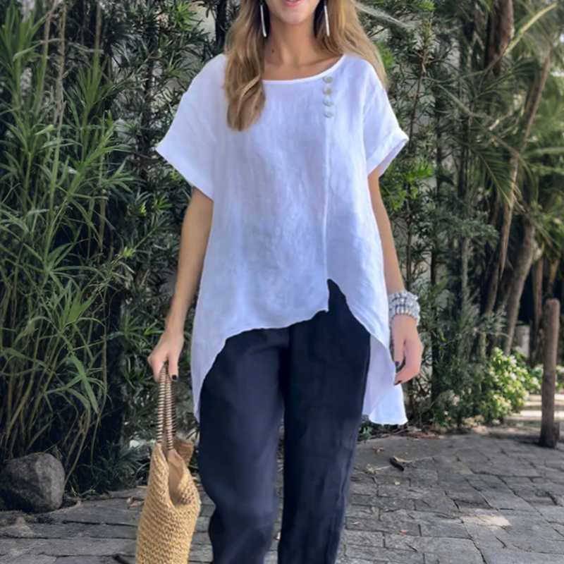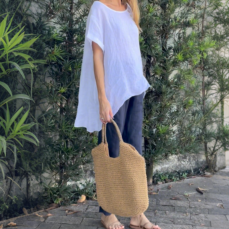 LUN, avslappet passform - Det løse, draperte snittet lar kroppen din puste. Ingen klamring, ingen klemming - bare myk flyt som følger deg fra morgen til kveld. Luften sirkulerer fritt, slik at du holder deg frisk, glatt og irritasjonsfri, selv når du bruker den i mange timer.