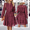 Pakken inkluderer: 1 * Langermet blonder Jacquard-trykt kjole for kvinner
