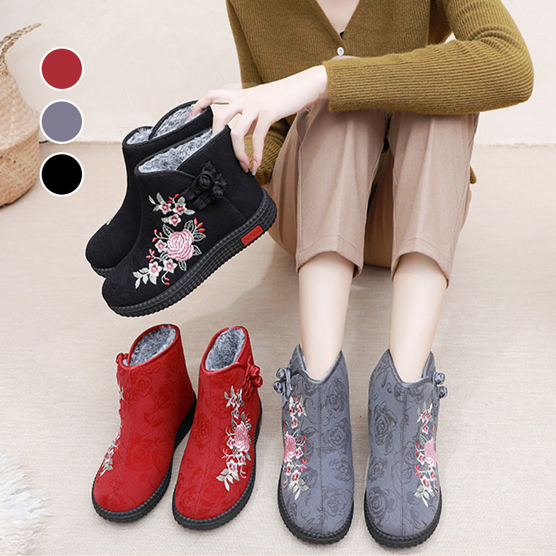 🔥Siste dag med 50 % rabatt – håndbroderte, varme bomullsstøvler for kvinner