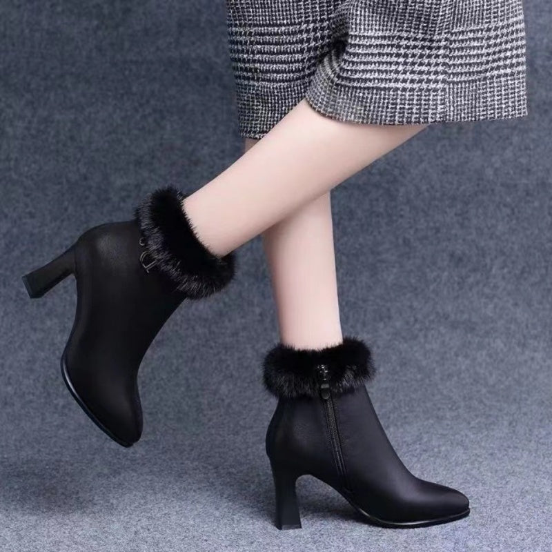 Høyhælte ankelstøvler med spiss tå for kvinner