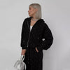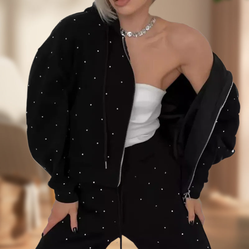 2-delers sett med polka dot-hettegenser med glidelås og bukser for kvinner