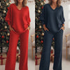 👚✨Damekolleksjon med glitrende topp med V-hals og bukser med vide ben🎁