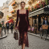 FLATTERING SQUARE NECKLINE - Den vintage-inspirerte firkantede halsen rammer inn kragebeinet og dekolletasjen på en vakker måte, fremhever din naturlige eleganse og gir deg et klassisk, men likevel fengende utseende, ideelt for formelle anledninger.