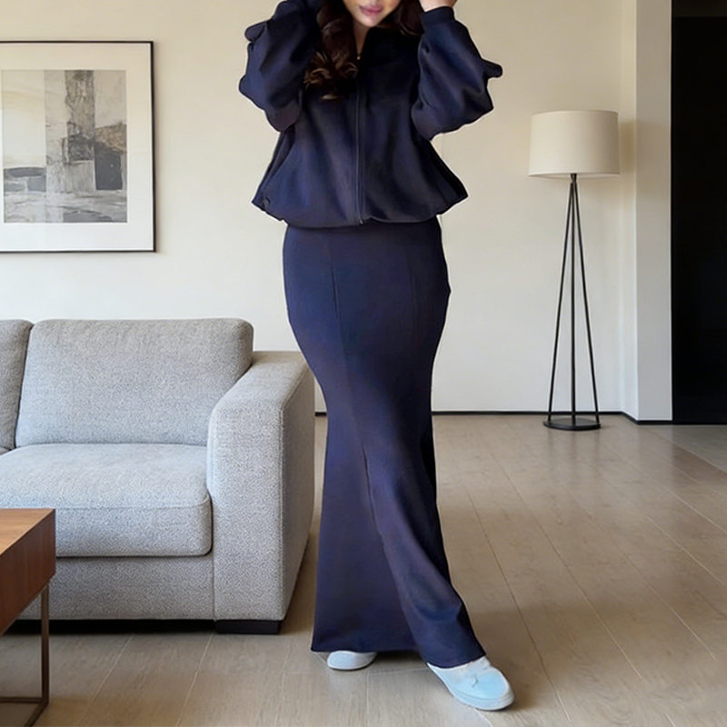 KOMFORTABEL OG STILIG PASSFORM – Blouson-designet på toppen med elastisk kant kompletterer det elegante skjørtet og skaper en balansert silhuett som både er komfortabel og moteriktig, perfekt for bruk hele dagen.