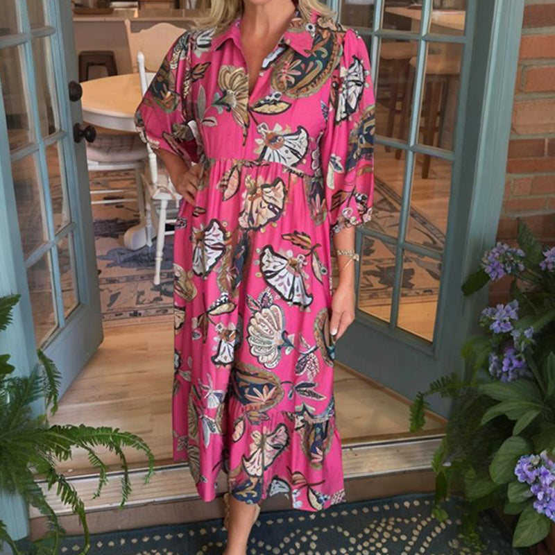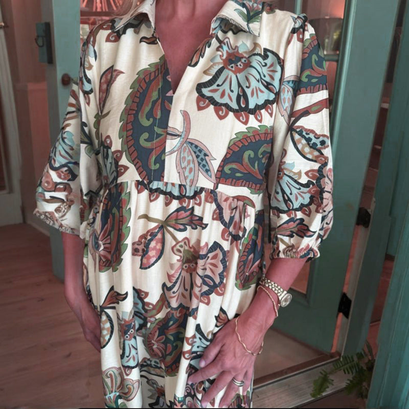 Leveringsomfang: 1 * Løs damekjole med vintage-trykk og V-hals