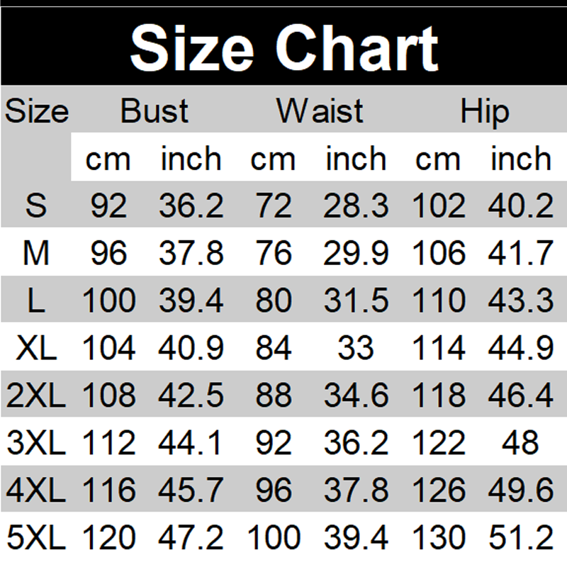 Størrelse: S, M, L, XL, 2XL, 3XL, 4XL, 5XL