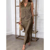 V-HALS ERMELØS DESIGN – ET TIDLØST TREKK: Toppens flatterende V-hals og ermeløse silhuett fremhever kragebeinet samtidig som den er luftig på varme dager. Knappelukking gir både et stilig preg og funksjonalitet, noe som gjør antrekket enkelt, men elegant. Denne designen løfter uttrykket ditt enten du skal i hagefest eller et semi-formelt arrangement.